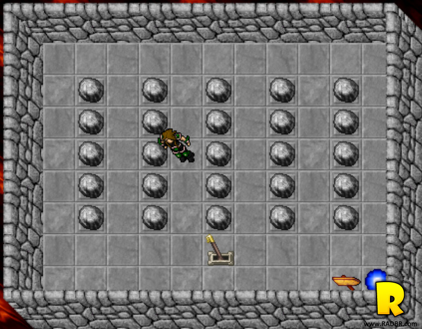 - O guerreiro de machado esta na fileira da pedra marrom.